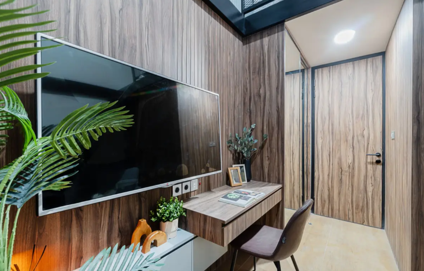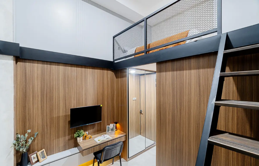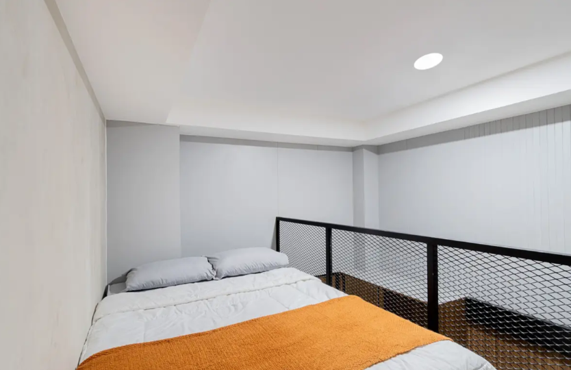 Konsep loft di kost Cimahi ini juga didukung oleh desain yang minimalis dan modern sehingga memberikan kesan simpel, bersih, dan elegan. Tidak hanya itu, platform tidur yang menjulang tinggi pun mampu menciptakan nuansa unik dan menarik yang membuatmu jadi betah untuk berlama-lama di dalam kamar.